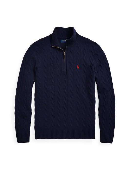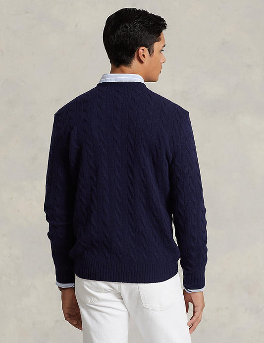 CABLE-KNIT WOOL-CASHMERE PULLOVER NAVY