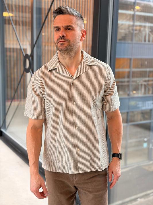 LUKAS STRIPE COTTON LINEN SS SHIRT BROWN