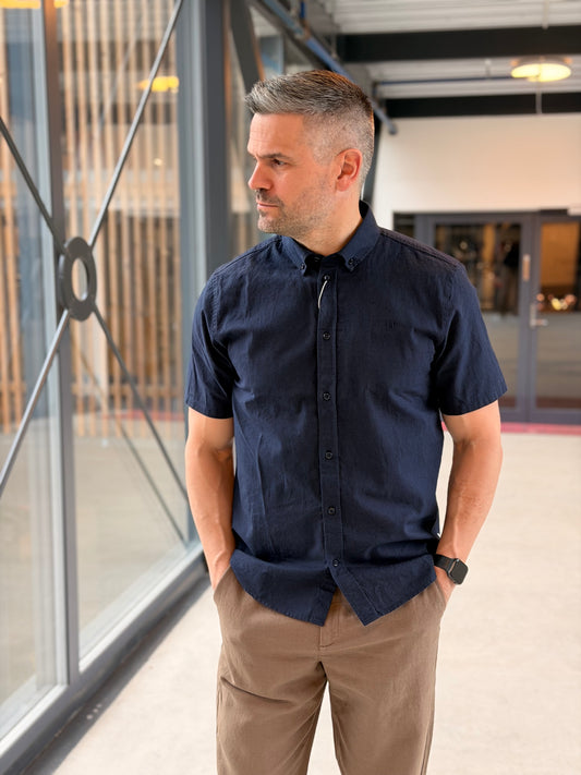 KONRAD COTTON LINEN SS SHIRT NAVY