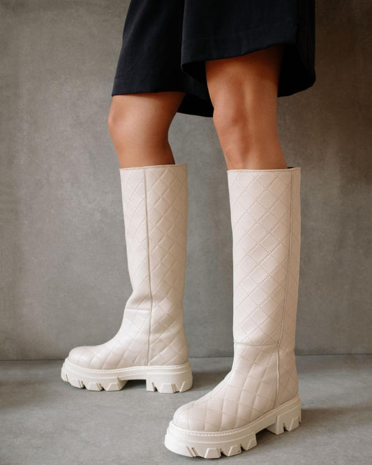 KATIUSKA SKINNSTØVLETTER KREMHVIT