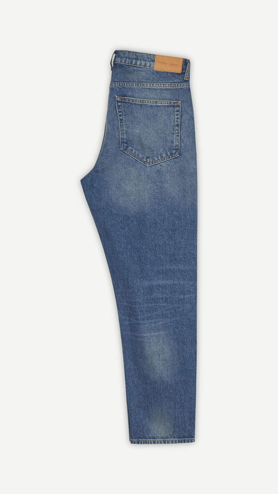 Jeans med avslappet passform og rette ben. Lukkes med knapp og glidelås. 5-lommers modell. Beltehemper. Laget hovedsakelig av 100% organisk bomull.