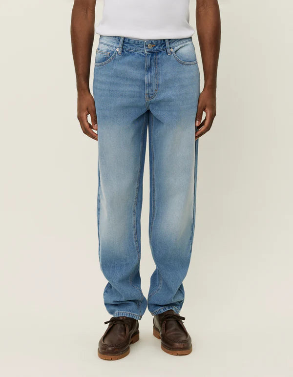 Ryder er en bukse med avslappet passform, laget av 100 % økologisk bomull. Den har fem lommer, inkludert myntlomme, glidelåsgylf med knapp og Jacron-merke på ryggen.
