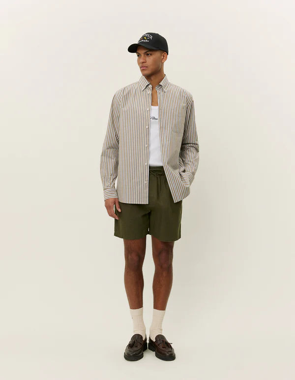 Kent er en allsidig poplin-skjorte med klassisk stripete mønster, laget i 100 % bomull. Den har button-down-krage, brystlomme, mansjetter med knapper og et bærestykke med boksplissering for en god passform. Med buet nederkant og knappestolpe er dette et tidløst plagg som fungerer året rundt.