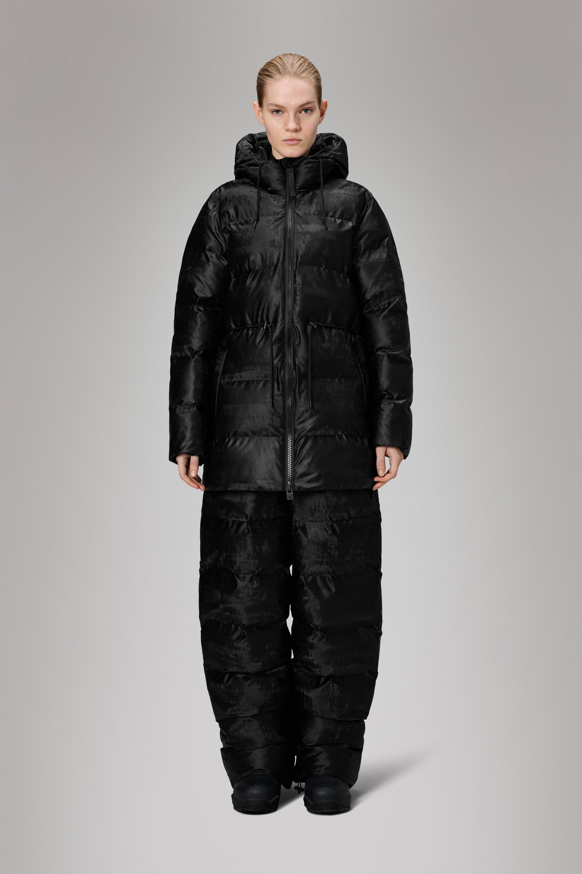 Alta Long Puffer String Jacket er en vanntett vinterjakke, kjennetegnet av en raffinert silhuett og en lettbåret puffer-estetikk.