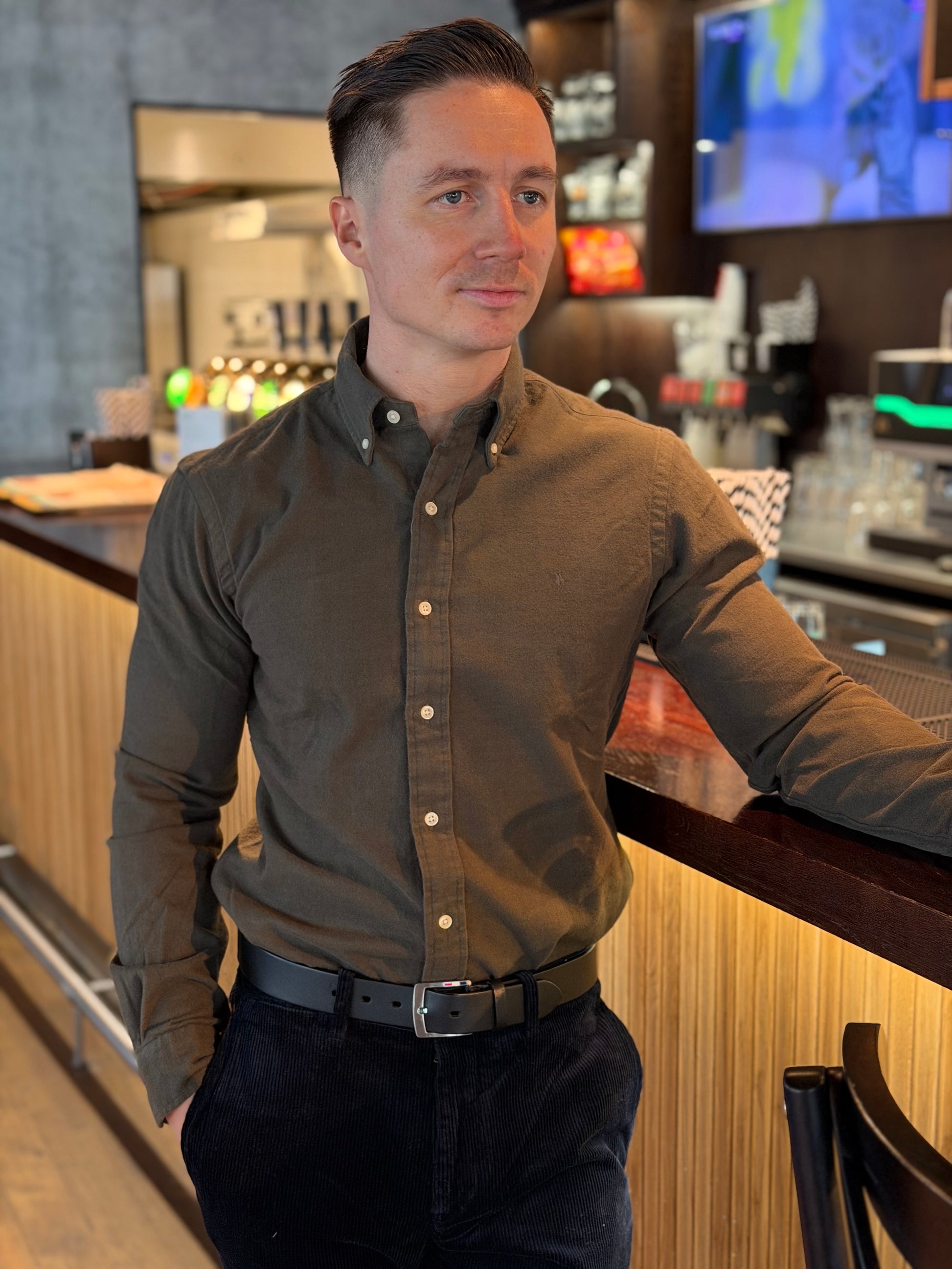 Denne slim-fit skjorten er laget av myk børstet bomullsflanell, som gir både komfort og et raffinert uttrykk. Stoffet har en varm og lett tekstur, perfekt for kjøligere dager. Skjorten er avsluttet med vår ikoniske, broderte Pony, som tilfører et tidløst og subtilt preg av merkevaren – ideell for en stilfull, hverdagslig look.