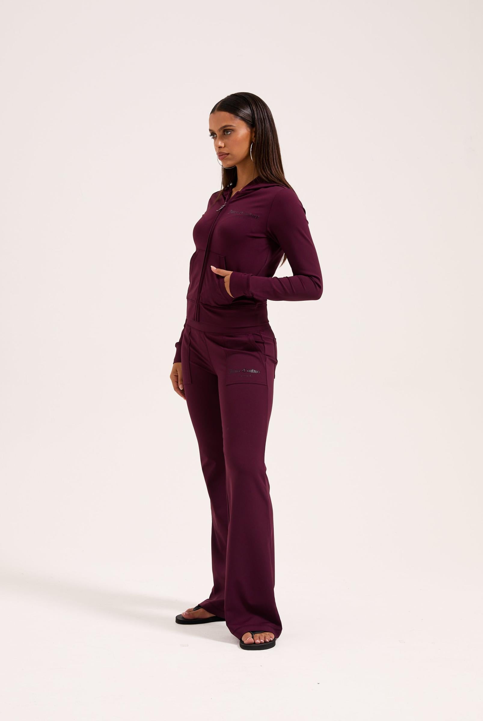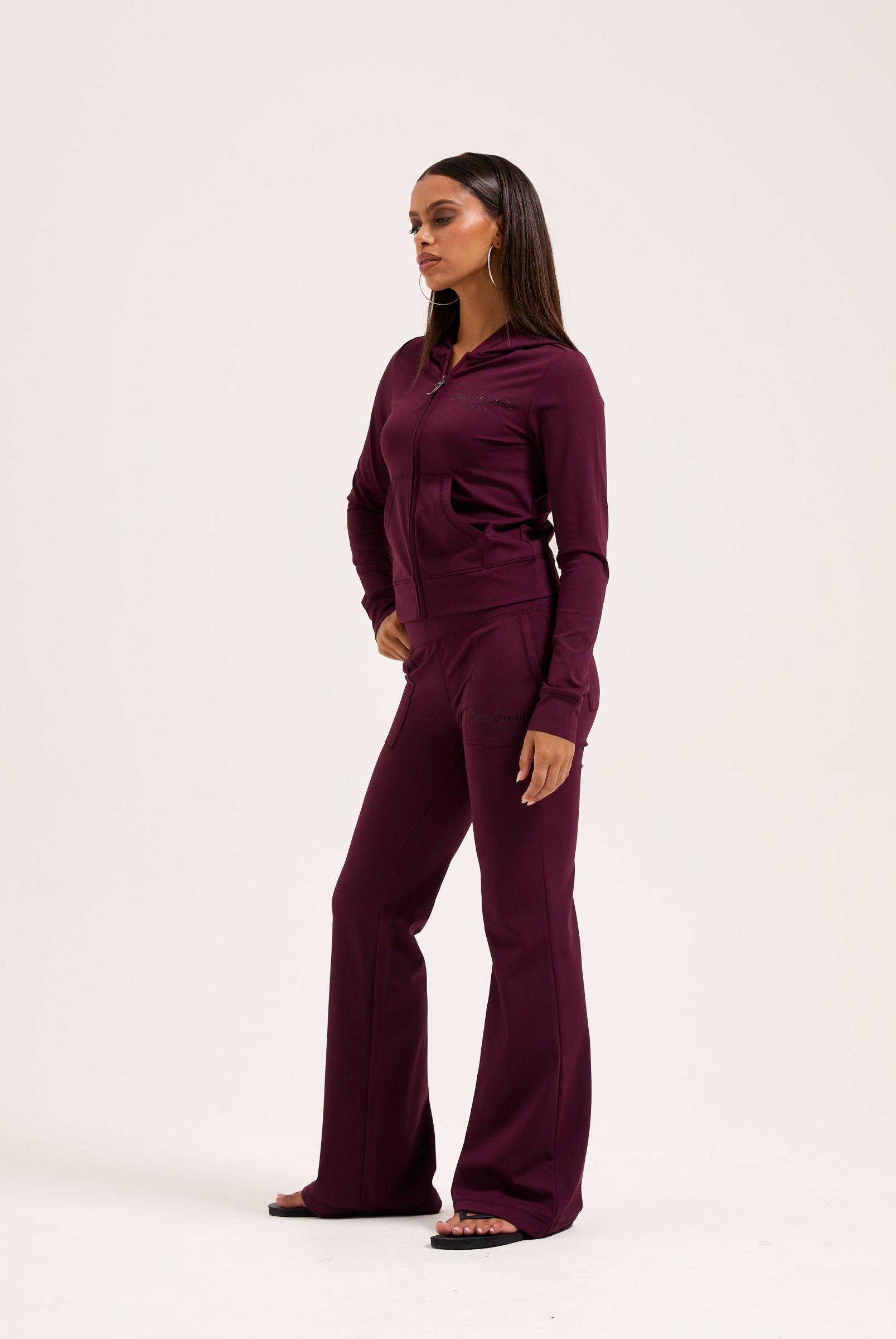 Den gotiske J-glidelåstrekkeren gir et statement-preg, og brystet er preget med en ton-i-ton Juicy Couture-logo som setter prikken over i-en. En perfekt miks av komfort, stil og nostalgi.