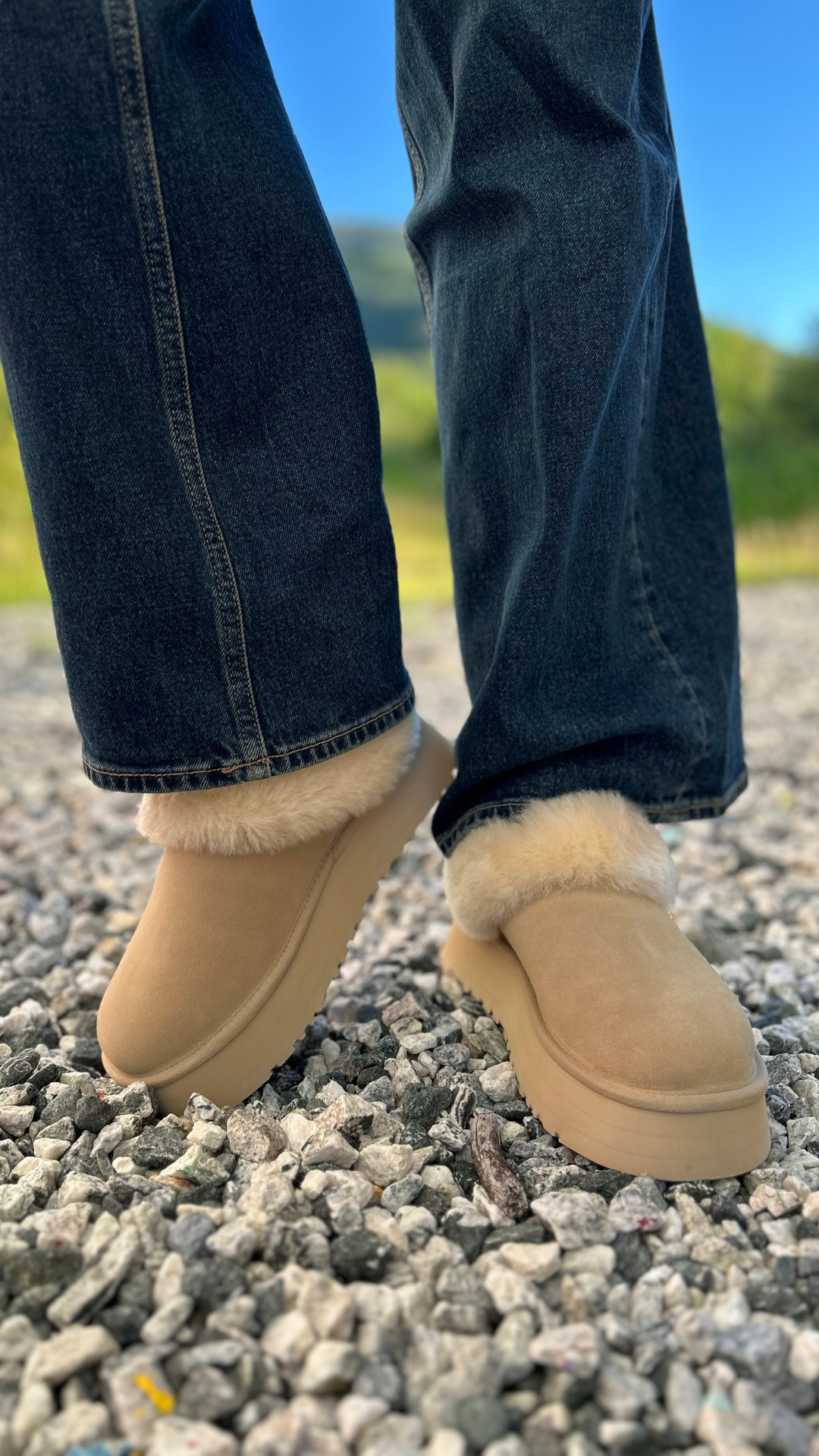 Tazzelle har en slip-on silhuett som gjør den enkel å ta av og på, og den lett hevede plattformsålen gir både høyde og et moderne uttrykk. Enten du skal ut døren i farten, eller ønsker en avslappet, men gjennomført look, er UGG Tazzelle et sikkert valg.