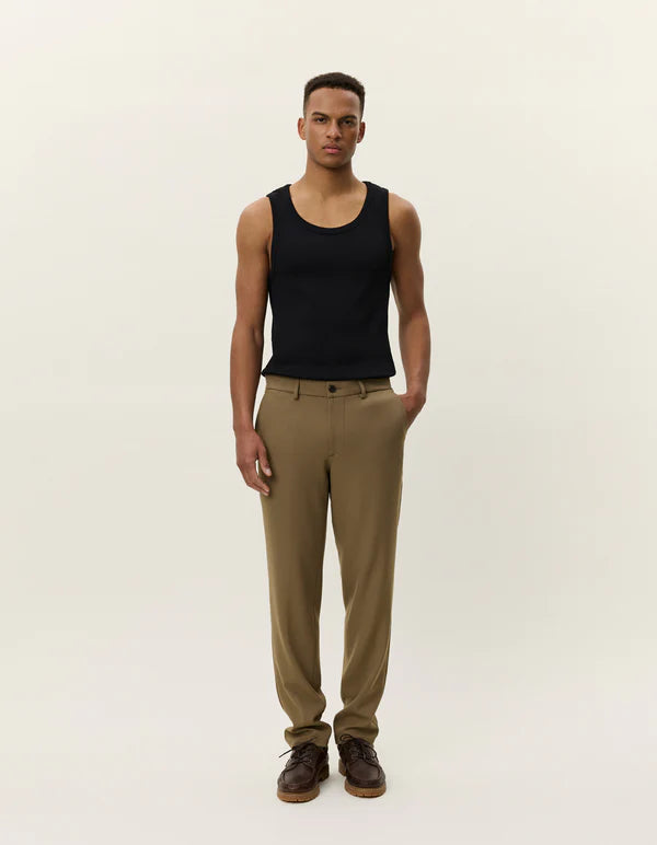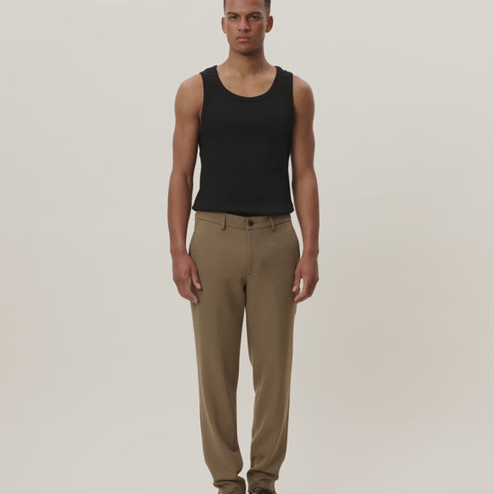 Denne utgaven av vår Como-serie kommer i et klassisk regular snitt og er designet for allsidighet og komfort. Den har en formell silhuett med pressfolder og er enkel å kombinere med alt fra strikkegensere til en matchende blazer. Laget i en lett stretchy kvalitet med resirkulert polyester og viskose, er dette en bukse som fungerer like godt til kontoret som til mer avslappede settinger.