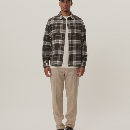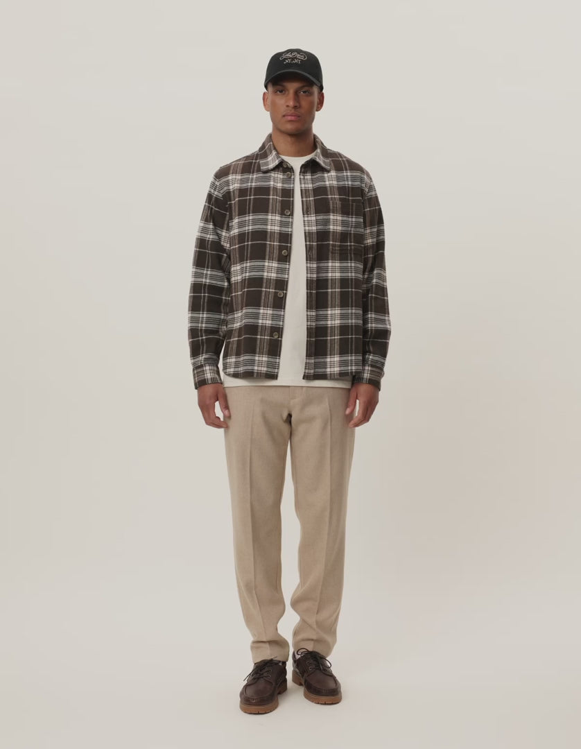Lennon Check Overskjorte er en tidløs klassiker for kjølige dager, laget av myk bomullsflanell i et rikt, klassisk rutemønster. Den balanserer komfort og stil, og er enkel å bruke som et lag over en T-skjorte eller under en jakke. Den har en enkel patch brystlomme, knappeliste foran, knappmansjetter og en avrundet høy-lav fald som gir et avslappet, men gjennomført uttrykk. Med klassisk krage og plisseringsfritt bærestykke er dette et plagg som passer sesong etter sesong.