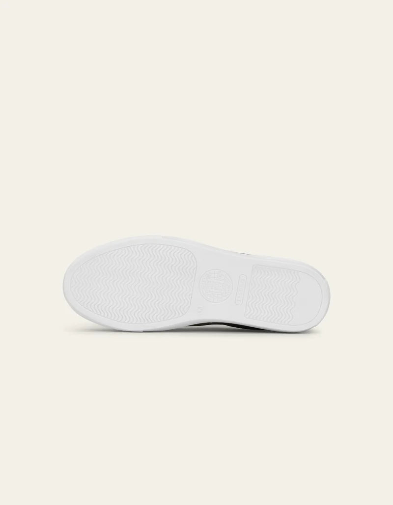 En nedtonet sneaker i mykt ku-semsket skinn. Tonale lisser gir et raffinert preg, mens kontrastgummisålen gir et skarpt løft.