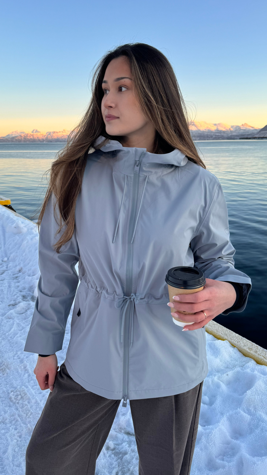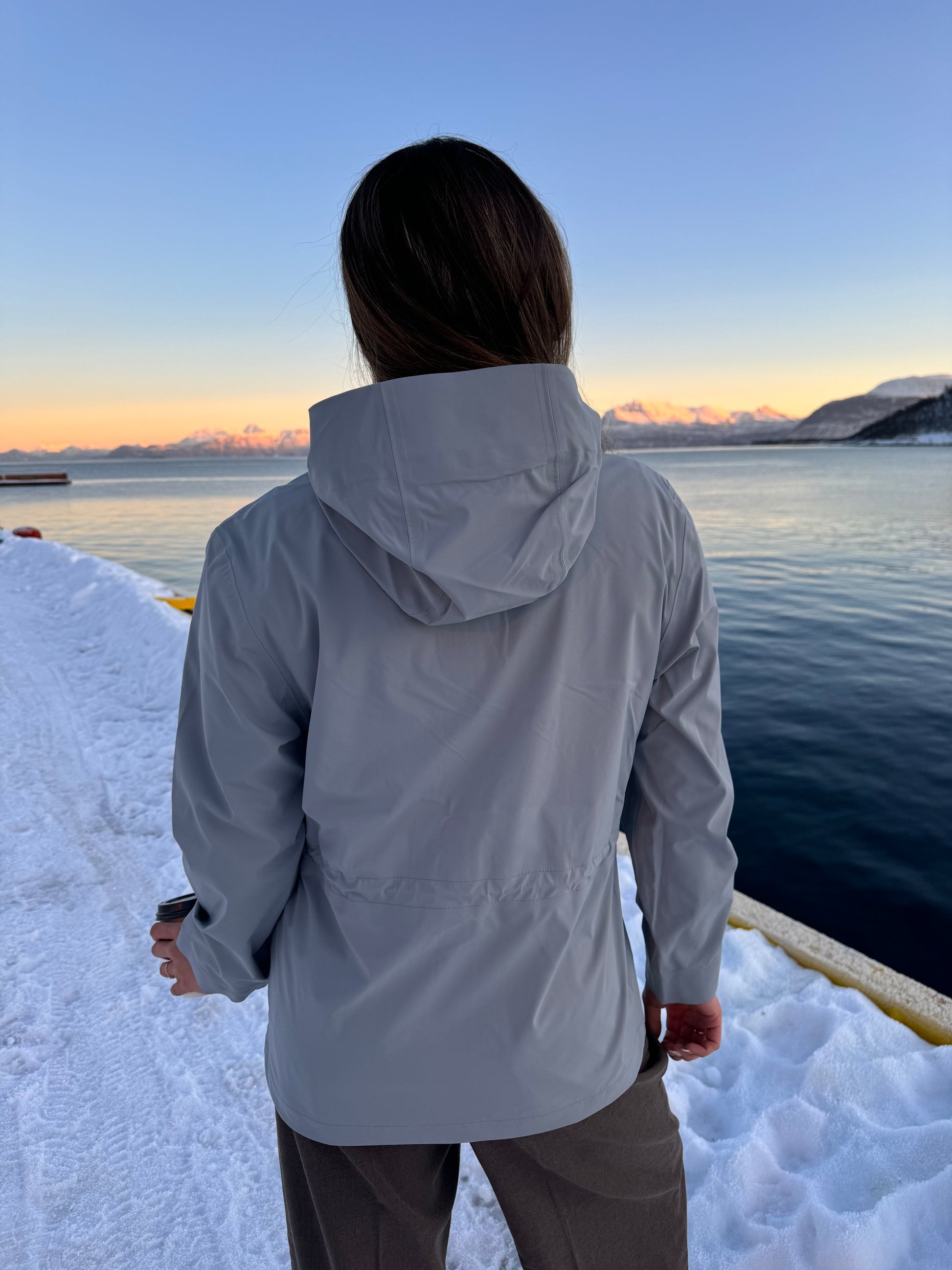 Suva Hardshell String W Jacket har vanntett glidelåslukking med belegg og hette med justerbar snor. Kvaliteten har mekanisk stretch, noe som gjør jakken perfekt til hverdagsbruk – enten du går eller sykler i byen.