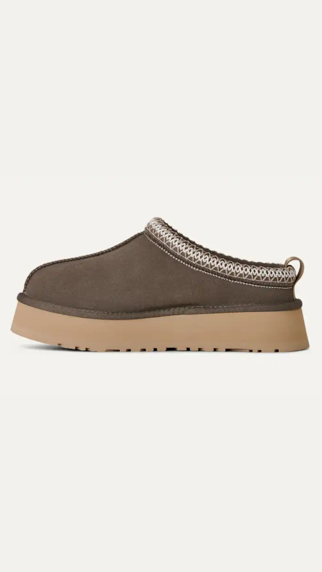 Lett platå? UGGbraid-detaljer? Uendelig brukervennlighet? Sjekk, sjekk, sjekk! Vår Tazz II beholder den enkle stilen og komforten du elsker med Tazz. Overdelen er laget av glatt semsket skinn, foret med mykt saueskinn, og EVA-yttersålen av sukkerrør har en forbedret rulleform for enkel bevegelse.