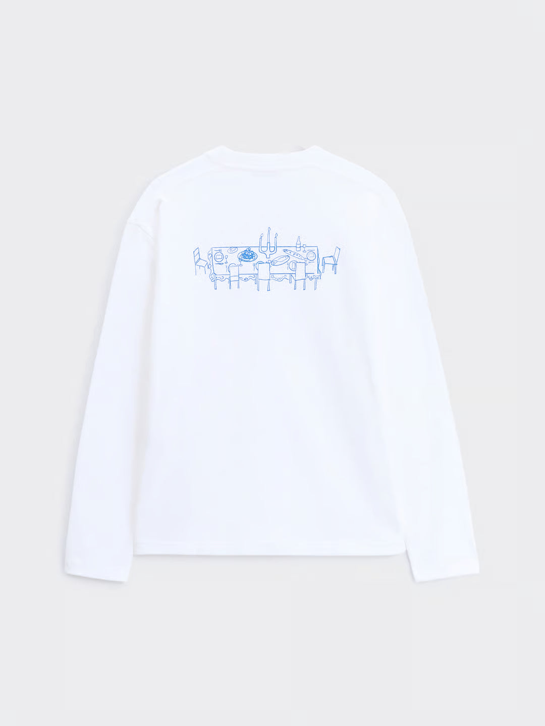 T-skjorten er laget av ansvarlig produsert, økologisk bomull som både er slitesterk, pustende og myk mot huden. Den brettede ribbekanten i halsen samt dobbeltsøm i nederkant og ermer gir en raffinert finish. Sesongens illustrasjon er silketrykt på brystet og forteller historien om samlende øyeblikk rundt bordet – en hyllest til lange måltider og gode samtaler, sesong etter sesong.