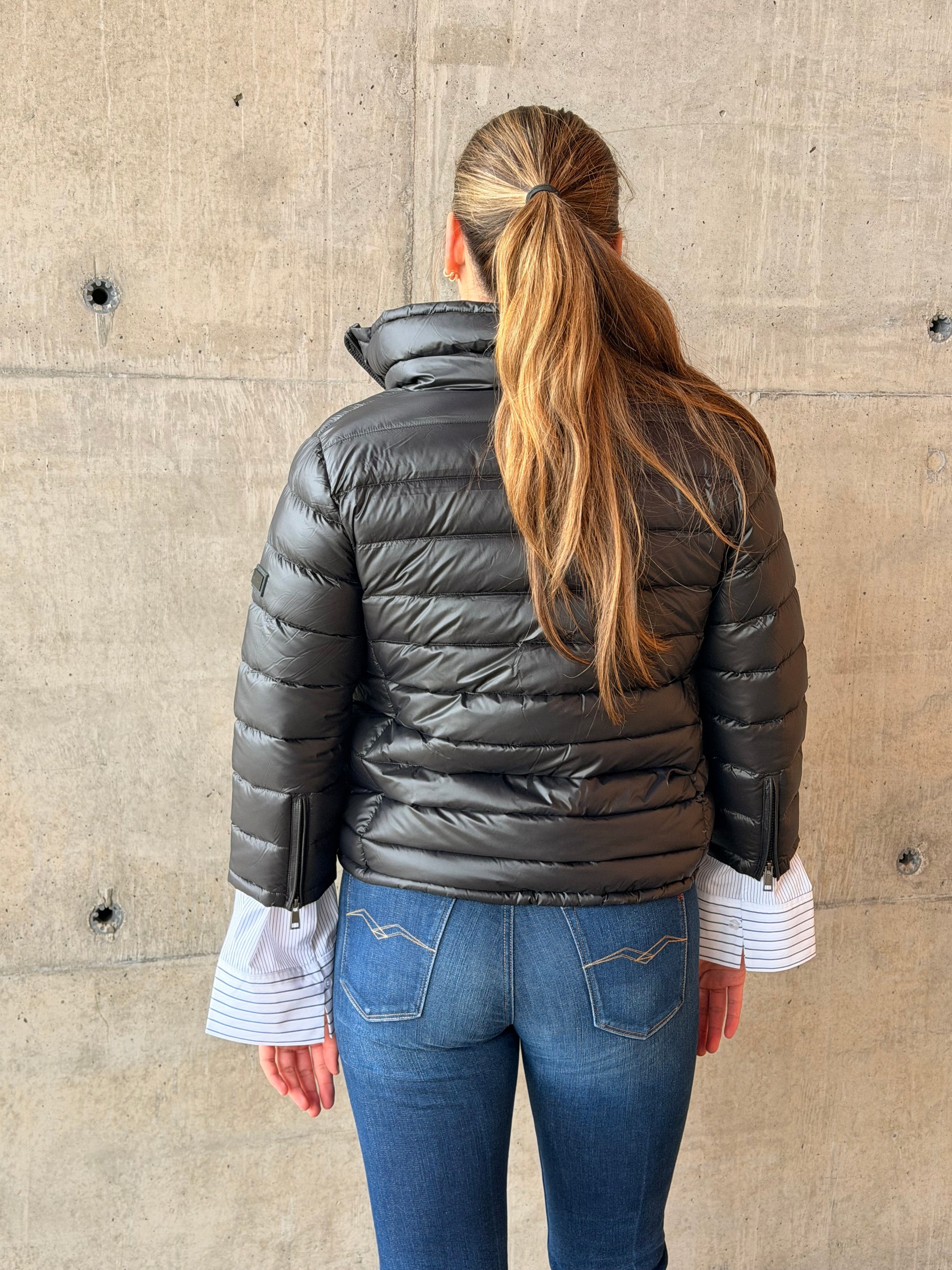 Jakken har høy hals som gir et rent og sofistikert uttrykk, og en praktisk to-veis glidelås i front som gir fleksibilitet i bruk. Sidelommer med glidelås sørger for trygg oppbevaring av småting når du er på farten.
